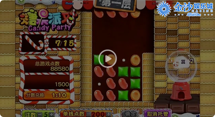 - 游戏在每一层随机派发相应数量的糖果,若有符合游戏规则的糖果组合,即可获得相应的游戏点数,同时,游戏自动生成新的糖果组合,直至不再形成符合游戏规则的糖果组合。